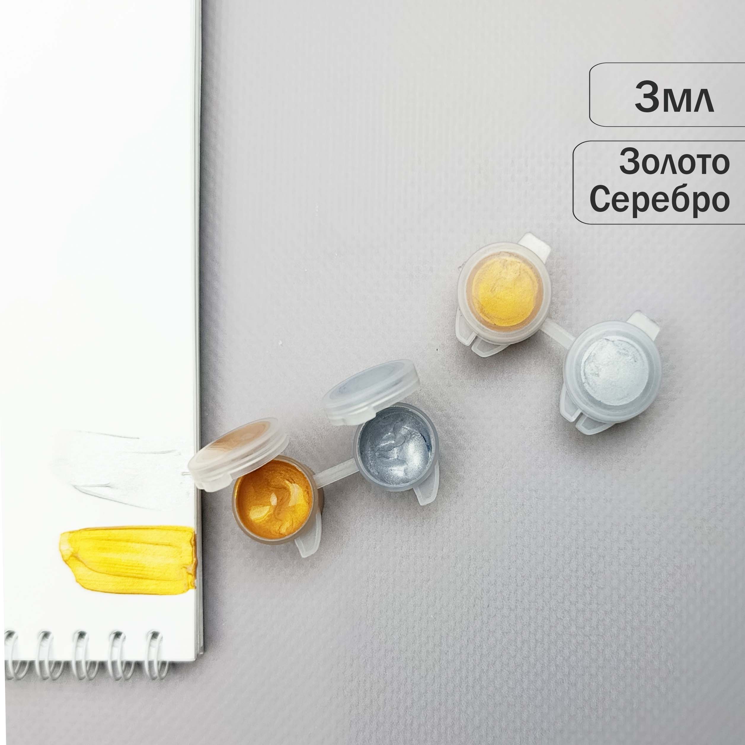 Акриловая краска 3 мл*2 шт (ЗОЛОТО И СЕРЕБРО) (арт К051)