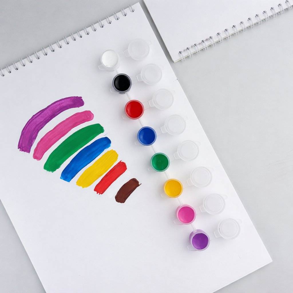 Цвета в наборе: красный, зеленый, синий, желтый, черный, белый, фиолетовый, розовый яркий