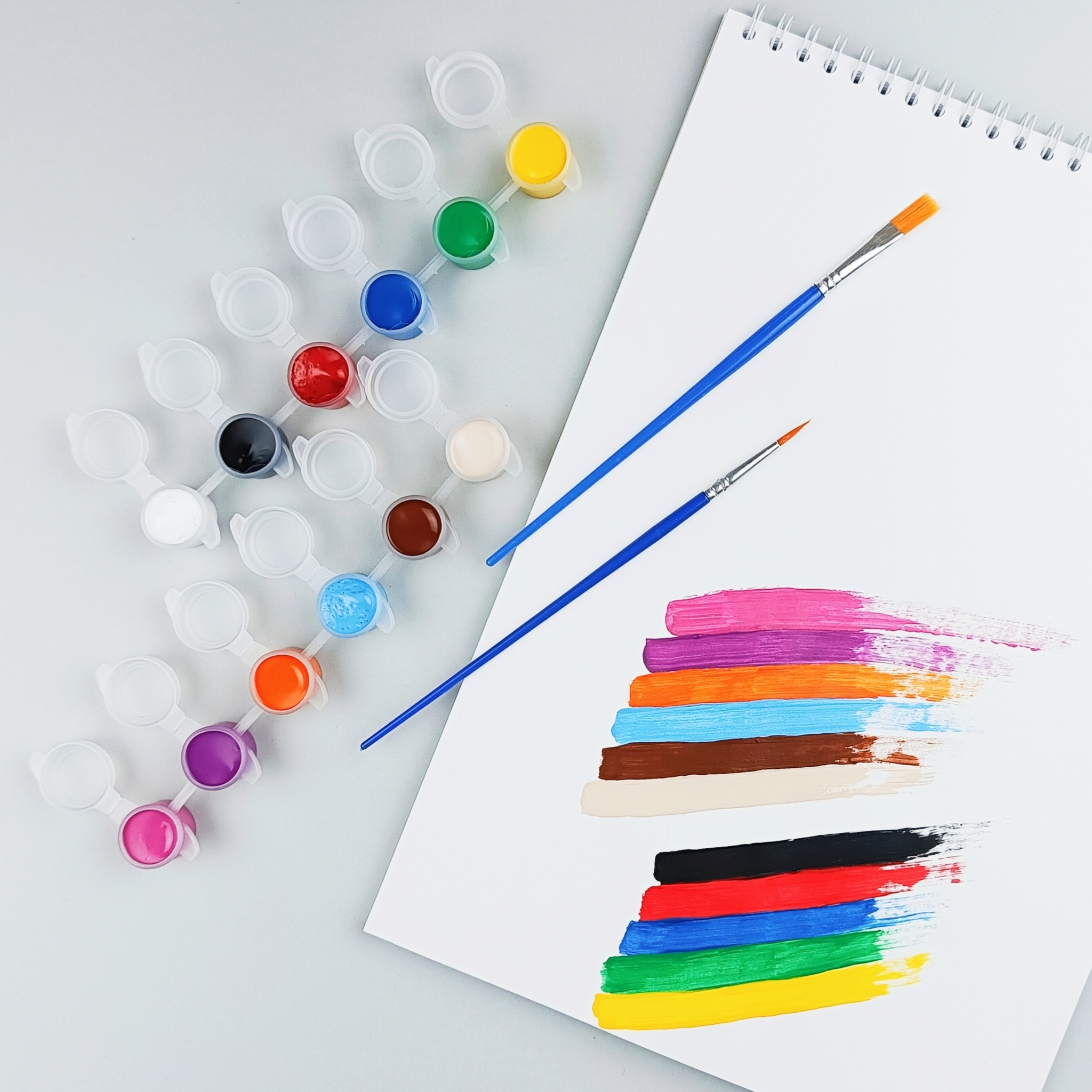 Набор акриловых красок 12 цветов*3мл с 2 кистями (морозостойкие)*